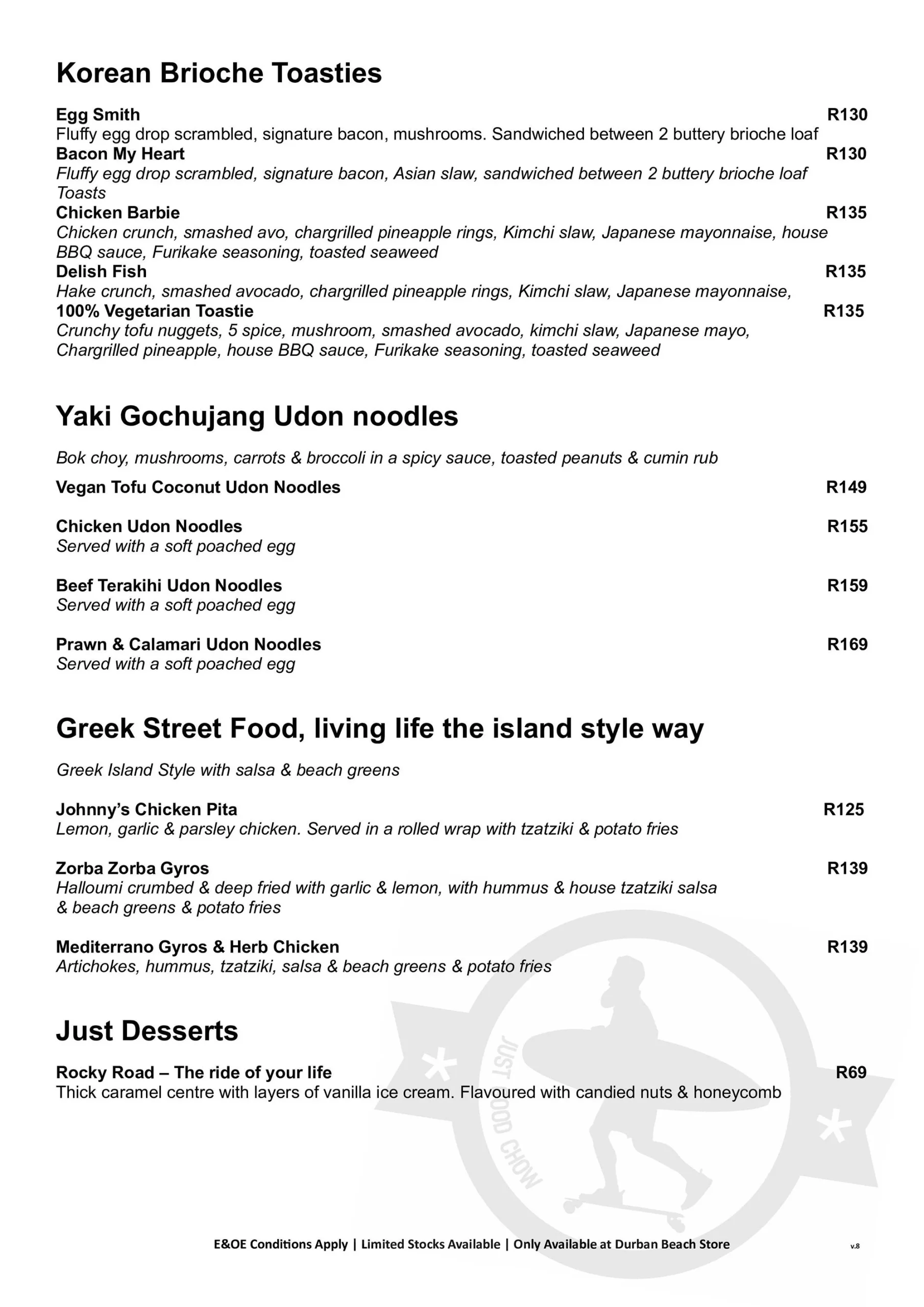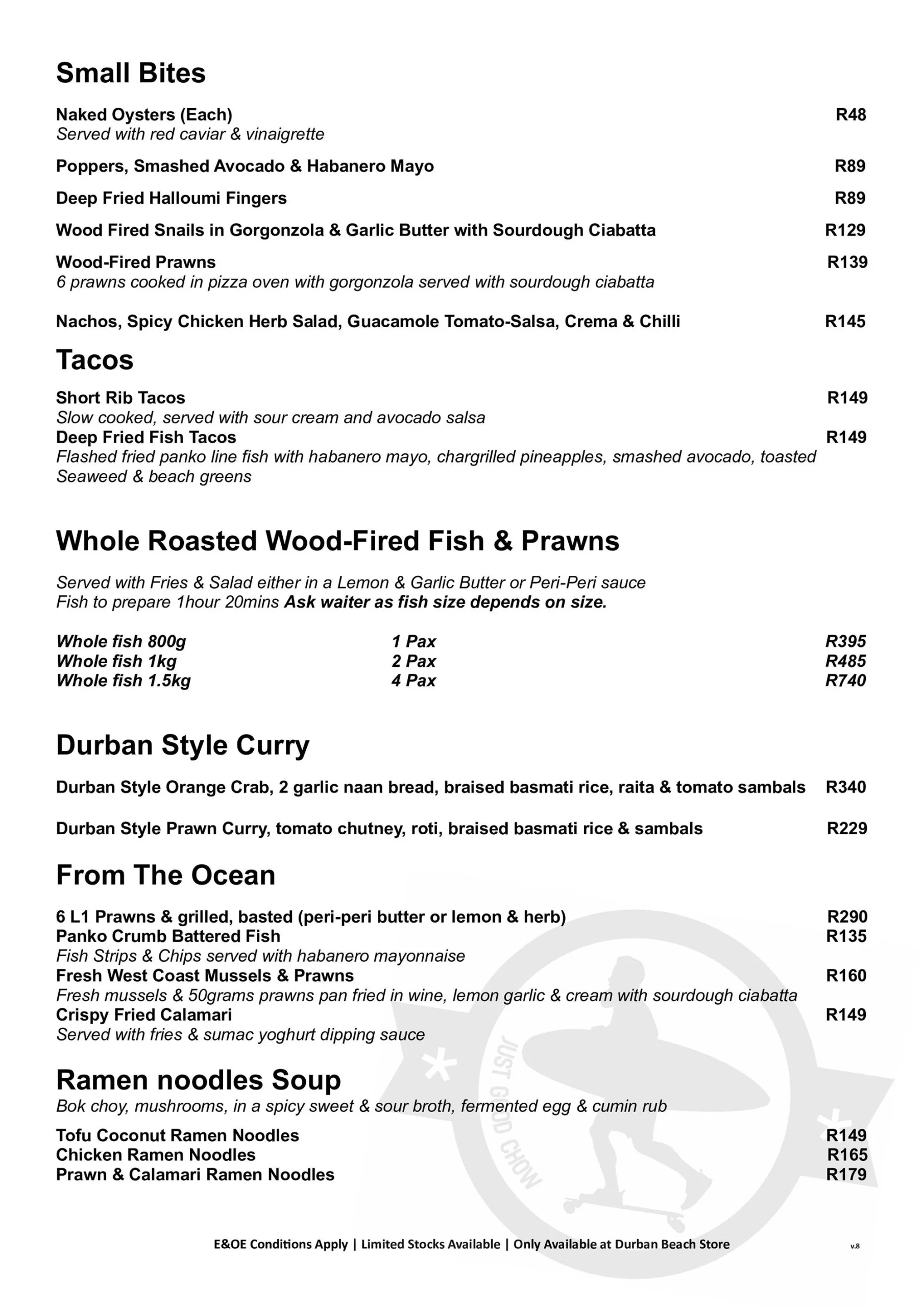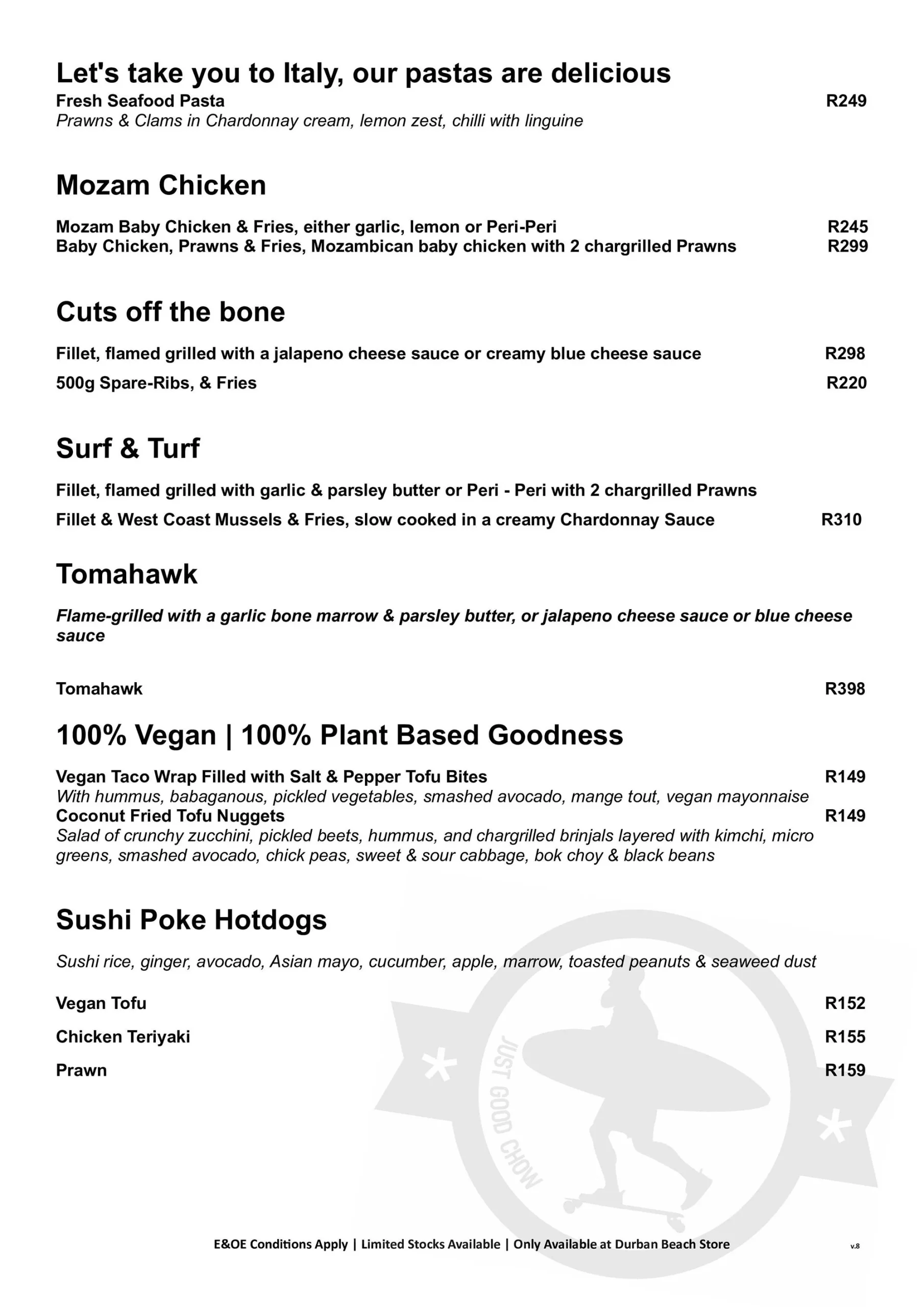 Speciality Menu E&OE CONDITIONS APPLY. PRICES ARE INCLUSIVE OF VAT.ALCOHOL NOT FOR SALE TO PERSONS UNDER 18