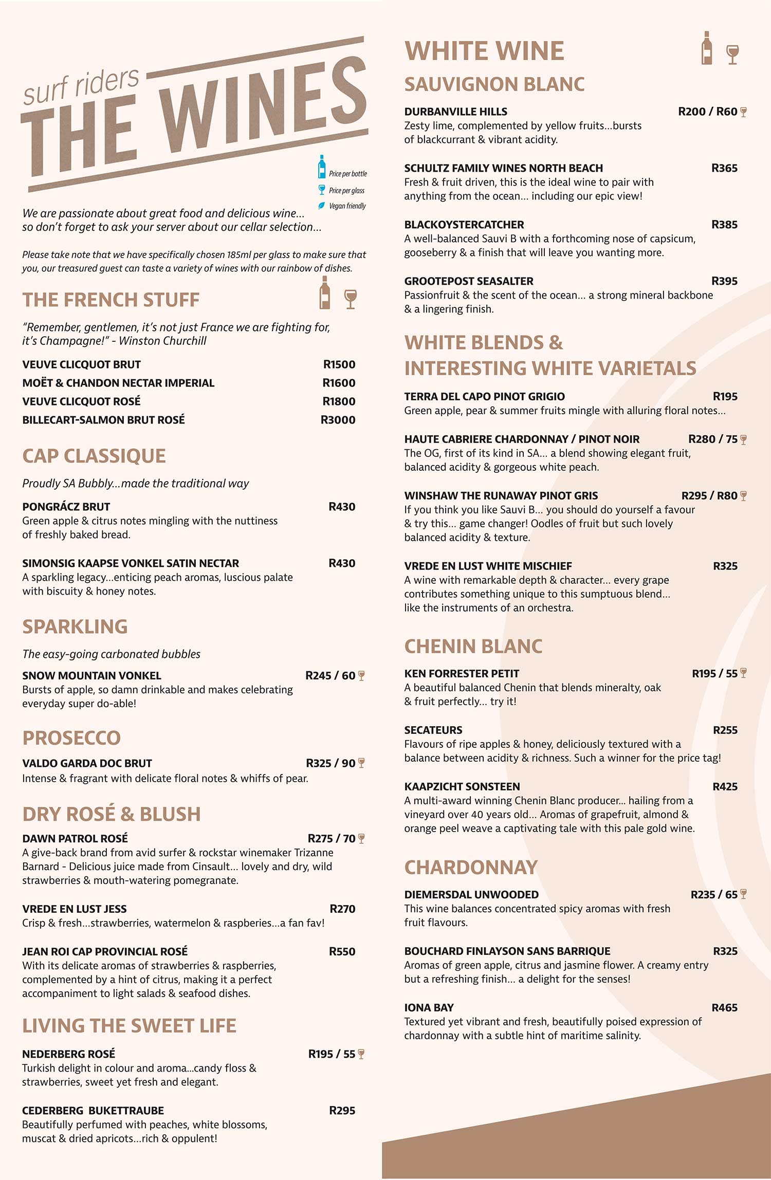 UMHLANGA CABANAS WINE LIST Rotate your device to landscape for mobile E&OE CONDITIONS APPLY. PRICES ARE INCLUSIVE OF VAT.ALCOHOL NOT FOR SALE TO PERSONS UNDER 18